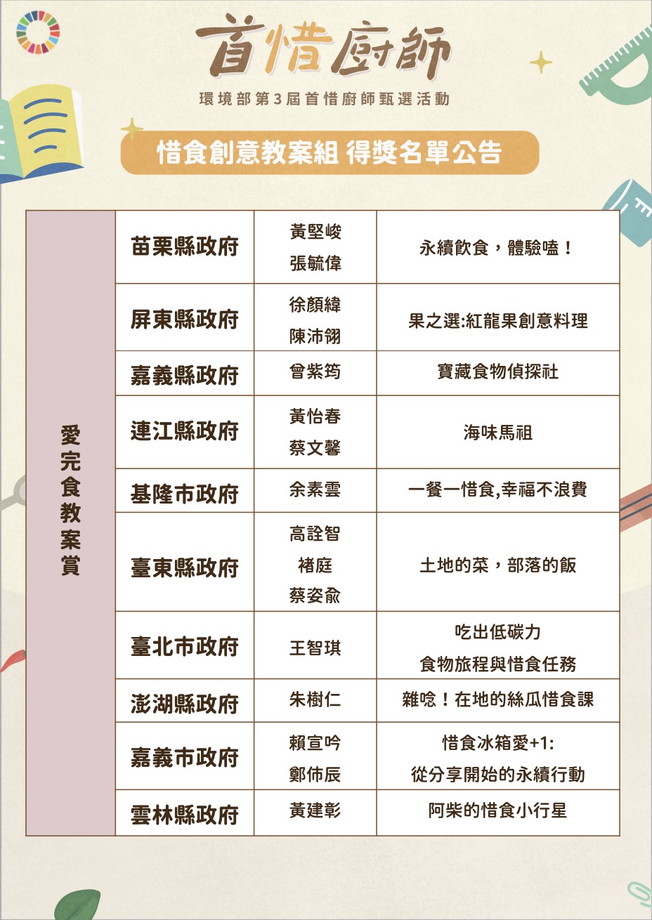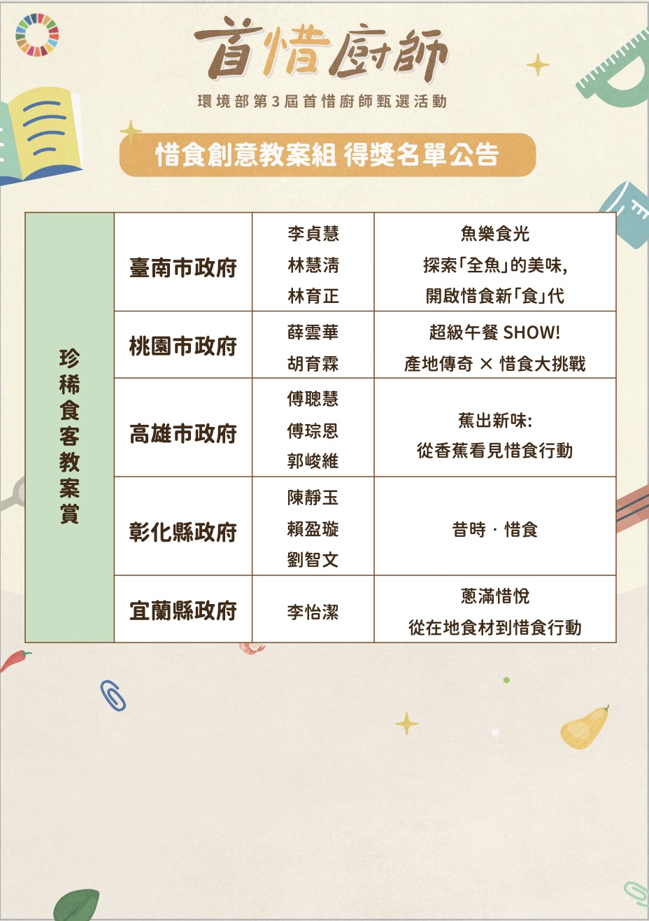 惜食創意教案組 得獎名單公告