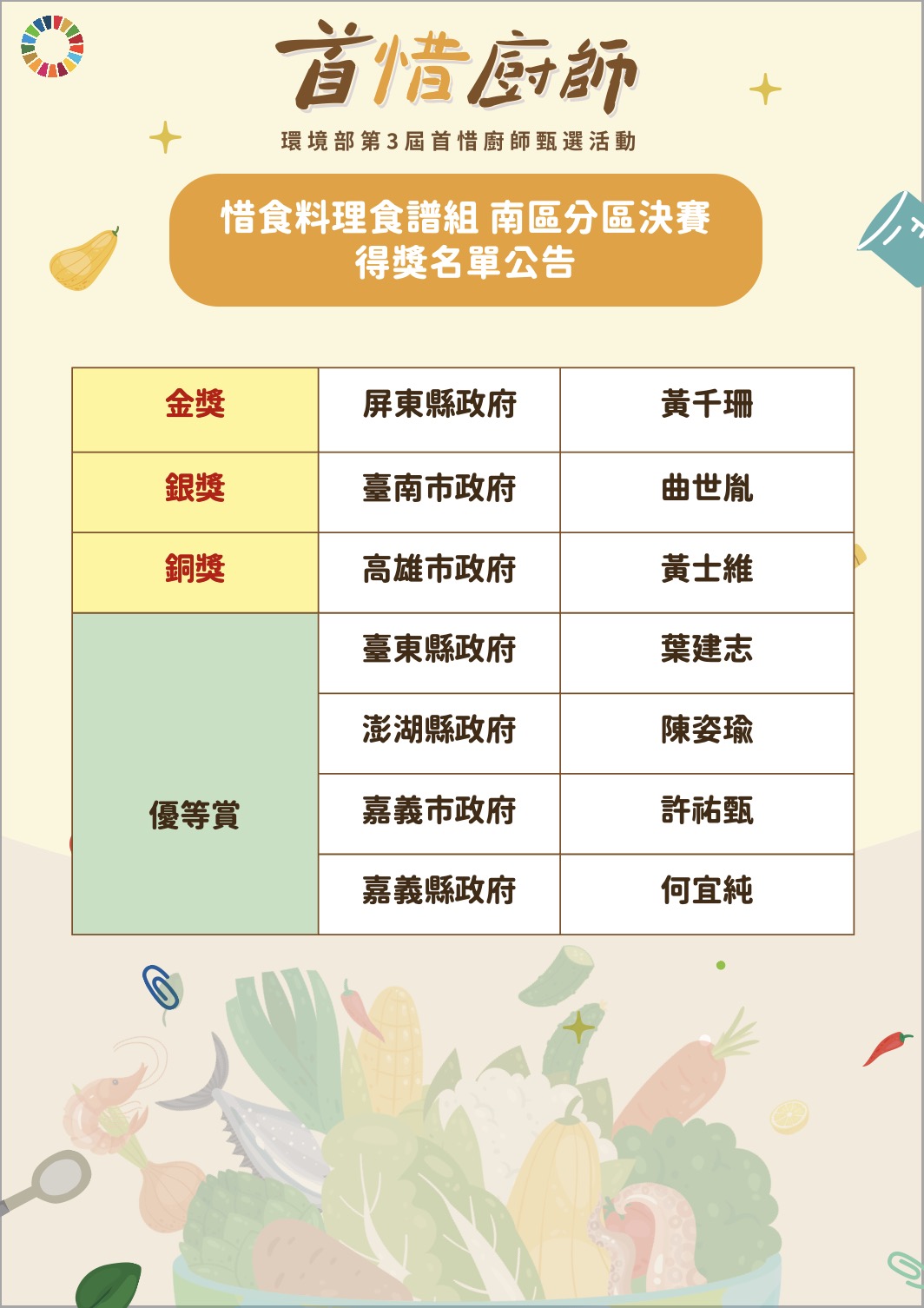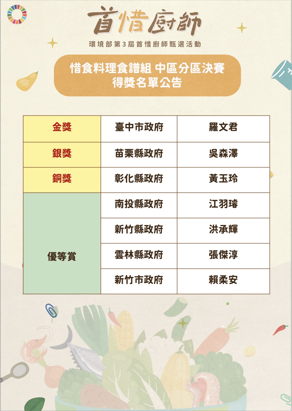 惜食料理食譜組 分區決賽得獎名單公告