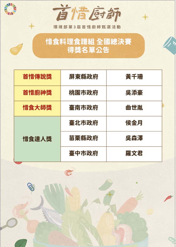 惜食料理食譜組 全國總決賽得獎名單公告